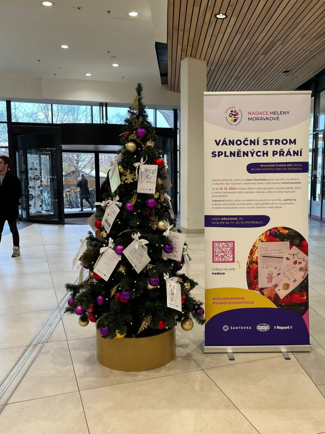 „Strom splněných přání je projekt, díky kterému mohou být na Vánoce obdarováni i ti, kterým ničivá povodeň vzala nejen všechny věci, ale mnohdy i vzpomínky a radost. Proto budeme rádi, když si lidé na stromečku vyberou libovolné přání, drobný dárek zakoupí a předají ho na infostánku v Galerii Šantovka. My se pak postaráme společně s nadací o to, aby dárky před Štědrým dnem doputovaly k dětem,“ řekla ředitelka obchodního centra Michaela Mitáčková. Akce začíná v galerii 29. listopadu a potrvá do 15. prosince.